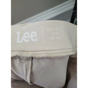Lee Womens Solid Beige Polyester Regular Fit Mid Rise Mini Casual Skirt Size 22M