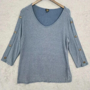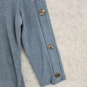 Lee Womens Striped Button Sleeve Top XL Blue White 15PT