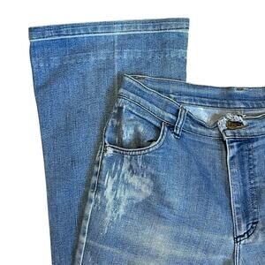 Lee Women’s Sz 27 Vintage 70s Bell Bottom Cotton Faded Thrashed USA Made Denim Jeans. Tag size 28 - modern size 27 based on measurements.