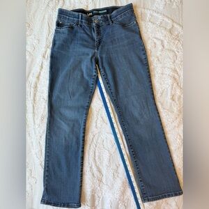Stylish high rise jeans by Lee. Classic blue denim. Ideal for everyday wear. EUC. A3