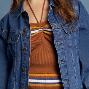 Brown writing on back saying Wild West Lee denim blue Jean jacket forever 21 collab WILD WEST on back plus size 3X NWT