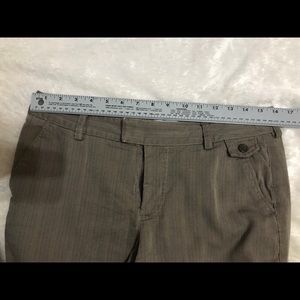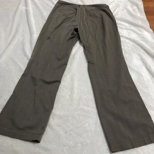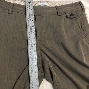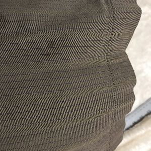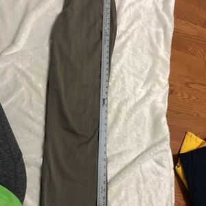 Lee dockers hunter green with blue and cream tweed aesthetic pattern, 16 inch waist, 10 inch inseam, 40 inch leg, very small stain on the bottom of the left leg