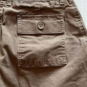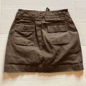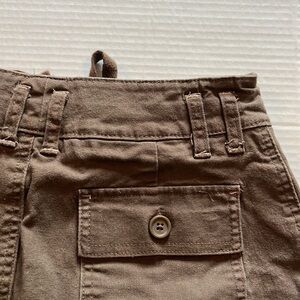 Lee -just below the waist Skort-size 4med-brown, with front pockets. zipper, snaps and drawstring to close in front. Two buttons back pocket. Built in shorts. In great condition 97% cotton 2% spandex. See photos for approximate measurements.