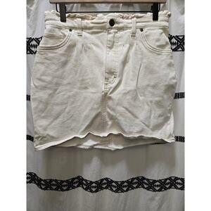 Lee white stretch denim mini skirt size 12. Cute ruffle detail at top along waistband, back waistband has elastac, zip front, small darts on front for shaping.