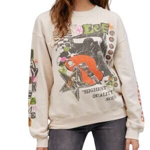Meant to feel like a real piece of memorabilia, the Daydreamer x Lee Highest Quality Sound BF Crew is a poster-style offering with stamped, distressed graphics and two sleeve hits. Slapped with our highest quality sound and designed with added pops of color to add some noise to your neutrals. Fit on an oversized crew sweatshirt that nails a borrowed from the boys look.