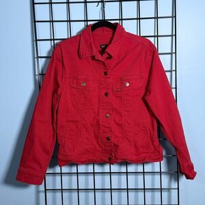 Lee Denim Jacket Womens L Red Classic Button Up Vintage Cottagecore Grunge