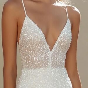 Leely Sparkly White Sequined Mini V-Neck Bodycon Dress