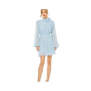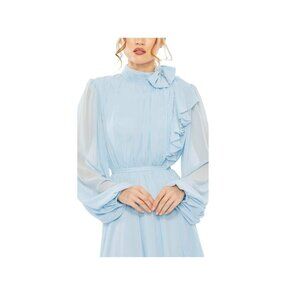 Leena For Mac Duggal 55878 Light Blue Bishop Sleeve Chiffon A-Line Dress Size 4