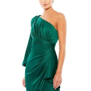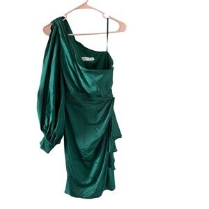 Leena For Mac Duval Satin Green Homecoming Prom Mini Dress Open Sleeve Size 8