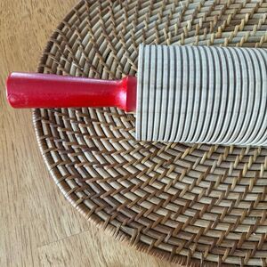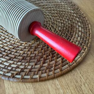 Lefse Wood Rolling Pin Grooved Corrugated Red Handle for Scandinavian Flatbread