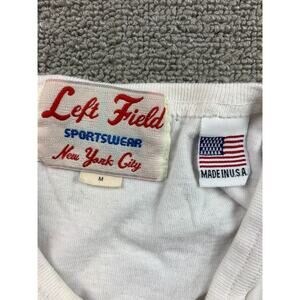 A vintage Left Field Sportswear Wildair pocket tee in crisp white—crafted in the U.S.A. Features a bold “Wildair” logo embroidered on the pocket and carries nostalgic New York City sportswear branding. Soft jersey material and classic tees proportions make it an effortlessly cool staple.