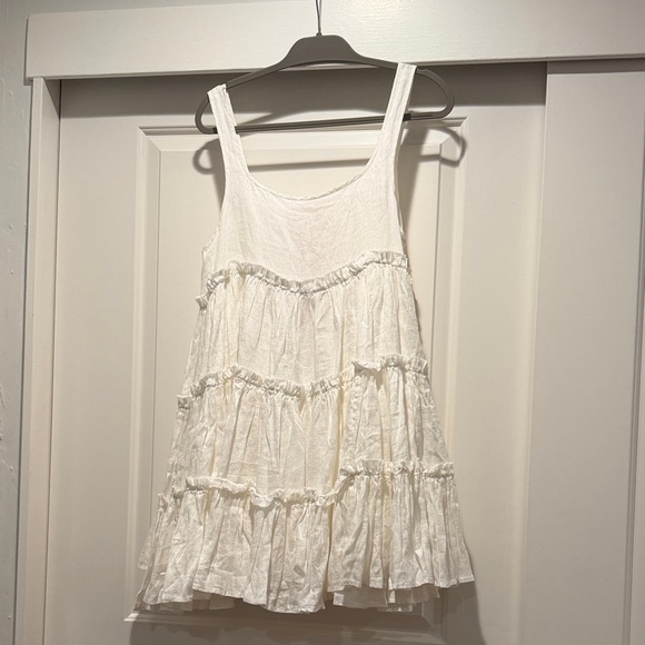Elegant white sleeveless mini dress. In excellent like new condition. Ideal for a vacation or beach days.