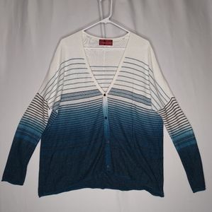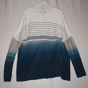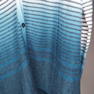 Left On Houston Cardigan Oversized Small Vneck Button Dolman Teal Stripe Knit