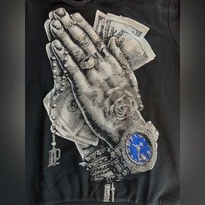 Stylish black hoodie featuring a unique graphic design. Perfect for casual wear. This hoodie is made by left point size medium brand new. Please look at all the pictures have any questions or comments sent them to me. Thank you. FYI the front picture is all bling bling!!