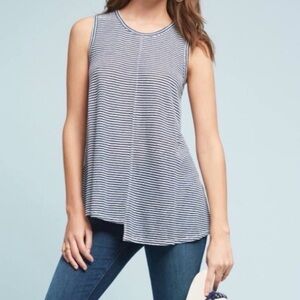 Left of Center (Anthropologie) Linen Blend Striped Tank w/ unique hem