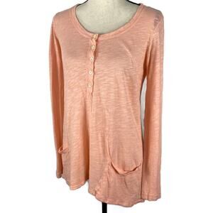 Left of Center Henley Top Anthropologie Button Scoopneck Tunic Pink Womens XS