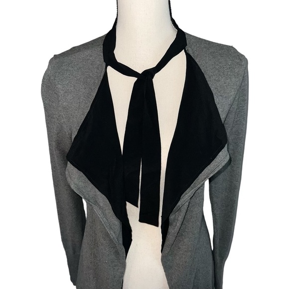 Left on Houston Silk Layered Office Attire Grey Black Cardigan Style Blouse