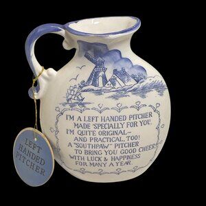 Crafted for left-handed users, this ceramic pitcher features a charming nautical theme, blending functionality with a decorative appeal.