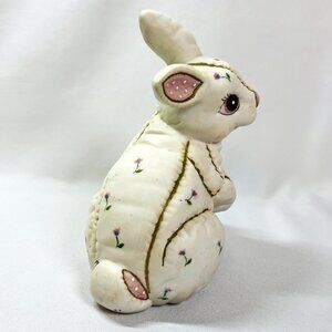 Sweet vintage bunny rabbit with a quilted look pattern in excellent condition with no chips, cracks or crazing. Marked impressed on the bottom “1987 Geo Z Lefton 06147”.