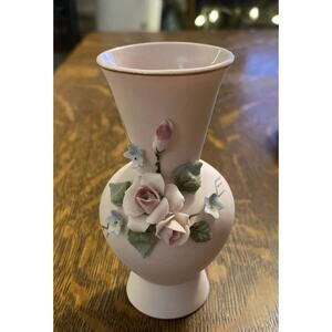 Lefton China 1847P Small 3 Dimensional Pink Floral Vase. Measurements shown in photos. No chips or cracks