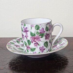 Lefton China Hand Painted Floral Demitasse Cup & Saucer Set