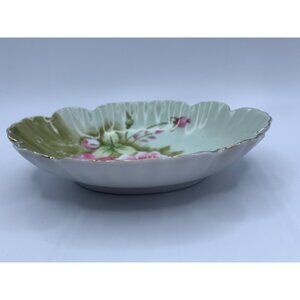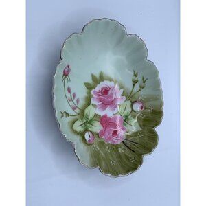 Lefton China Hand Painted Floral Oval Dish 6.5 inch Decorative Dish w Pink Roses