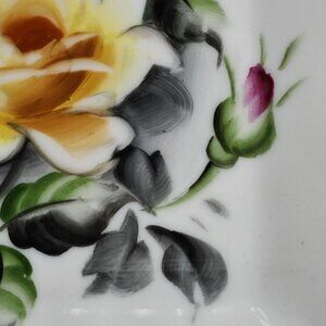 Lefton China Hand Painted Square Dish With Yellow Rose Design Gold Trim Vintage