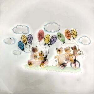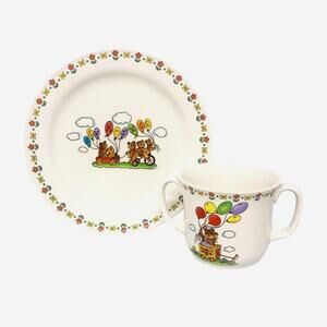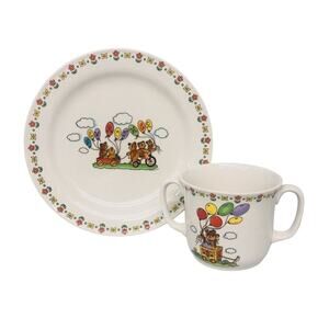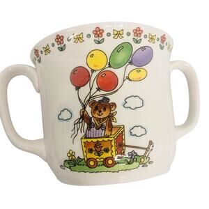 Lefton China New Mommy Double Handle Cup and Saucer Colorful Baby Bears Balloons