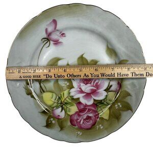 lefton china plates, lefton 3069, hand painted roses, japan porcelain, pink rose decor, vintage decorative plates, collectible kitchen wall art, floral display plates, antique dining collectibles