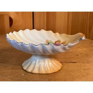 Lefton China Shell Dish Hand Painted Vtg 4 3/4” Roses 5066 Trinkets Ring Dish