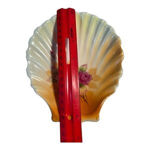 Lefton China Shell Dish Hand Painted Vtg Roses 5370 Trinkets Ring Dish.