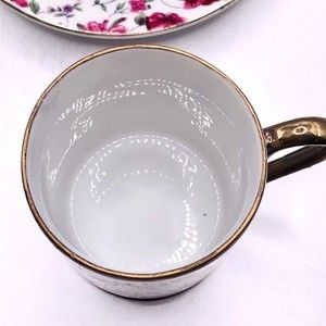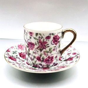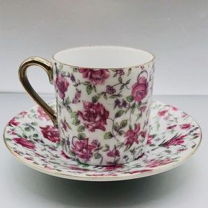 Lefton Chintz Pink Rose Demitasse 2" Tea Cup & Saucer Gold Accents 124