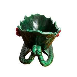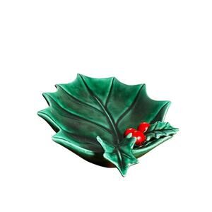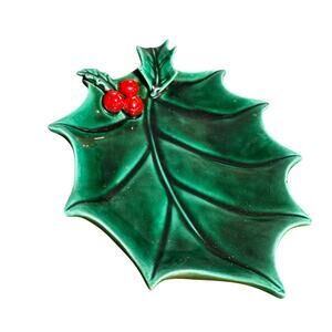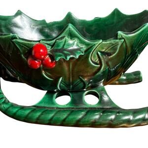 Lefton Christmas sleigh candy dish Japan 1346 & 1347 dark green Holly Berries