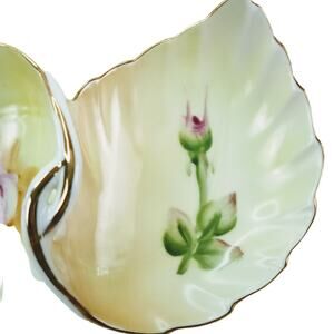 Lefton Double Leaf Gold Trim Hand Painted 4674 Trinket Dish
