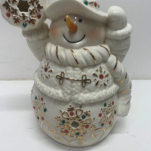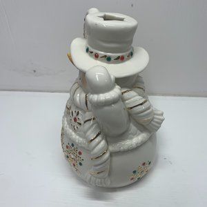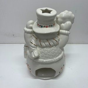 Beautiful Candle Warmer Ivory Snowman with gold trim and red and green stones throughout.
