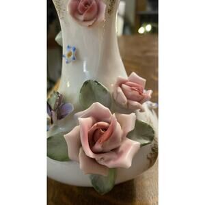 Lefton Hand-painted 6” Roses Gold Trim Blue Purple Flowers 6” Bud Vase. Hand painted there are no chips or cracks