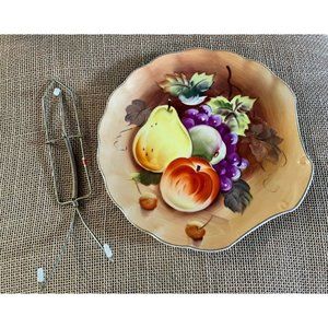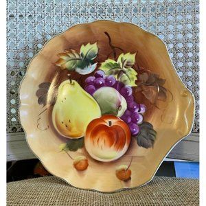 Lefton Handpainted Shell Shaped Plate w/ Fruit and Leaf Design, 7 3/4"