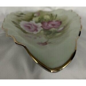This beautiful piece is a unique addition to your collection. The intricate hand-painted design featuring the Green Heritage pattern with pink roses makes it a perfect choice for antique lovers and collectors. It is made of high-quality porcelain material, and its matte finish adds to its vintage charm.