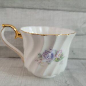 Adorned with delicate lavender roses, this Royal Albert teacup and saucer set offers an elegant touch with its gold rim. Crafted from fine bone china, it enhances your tea experience with a classic floral design.