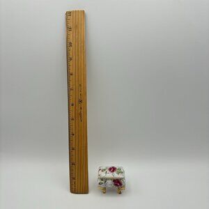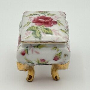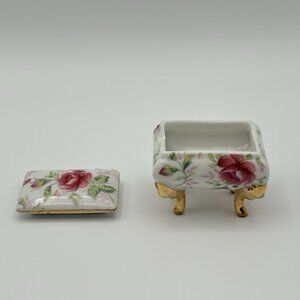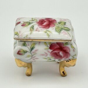 Lefton Pink Rose Flower Floral Footed Gold Gilt Mini Trinket Jewelry Box Japan