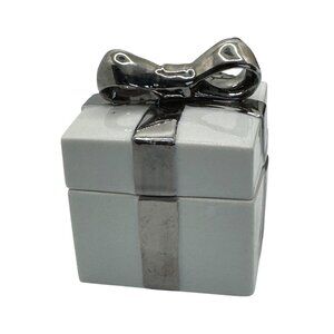 This porcelain gift box features a silver bow accent, adding sophistication to any space. Ideal as a decorative piece or for storing small keepsakes.