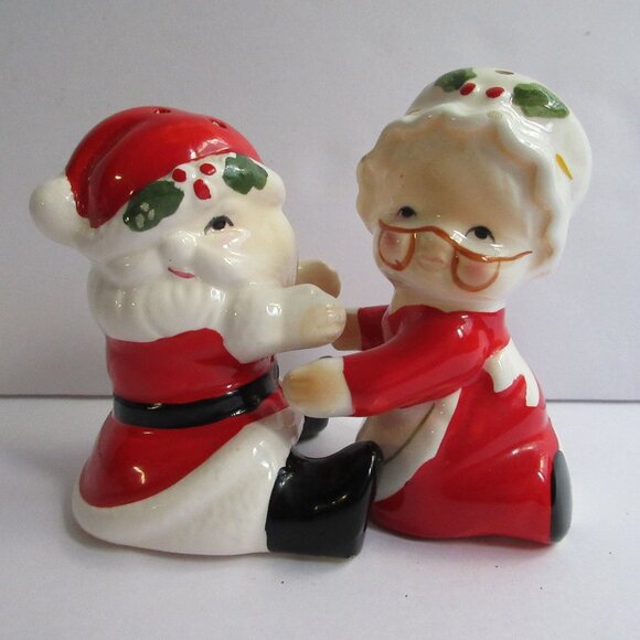 Lefton Santa & Mrs. Claus Hugging Japan Christmas Salt and Pepper Shakers Vtg