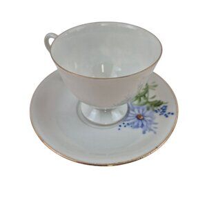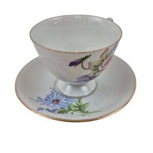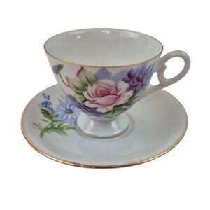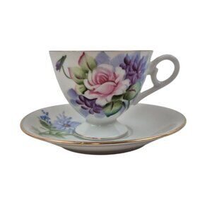 Lefton Teacup Saucer Set Japan Hand Painted Floral 4671 Gold Trim Vintage