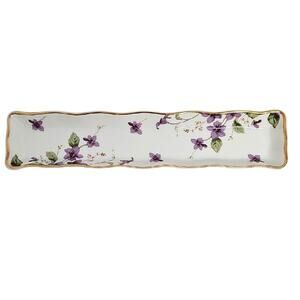 Charming china dish and trinket box set with a coordinating clock. Adorned with a lovely floral pattern in purple and green with gold trim. All pieces are in perfect condition with no chips, cracks or repairs (clock was not tested). A beautiful set for your bathroom, bedroom dresser or as a wonderful gift to that someone special in your life. Hurry and grab it today before it is gone!