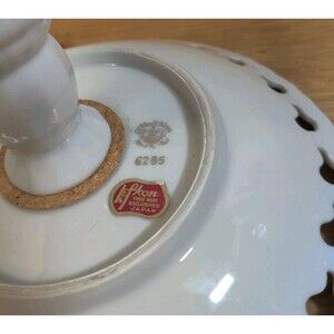 The Lefton Vintage Hand Painted Pedestal Pierced Compote Dish is a beautiful and unique candy dish made of bone china. It features intricate lattice pattern with hand-painted multicolor fruit design, adding a touch of elegance to any table setting. The gilded finish and vintage style make it a charming piece for serving candies or fruits in a decorative and stylish manner. With its 7x4" size and pedestal design, this compote dish is both functional and aesthetically pleasing for adding a vintage touch to your home decor.