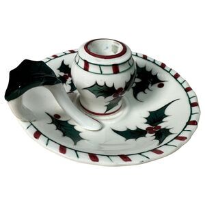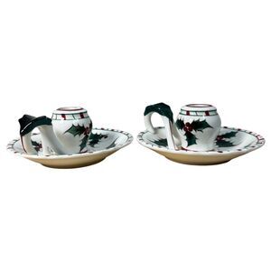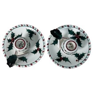 Lefton Vintage Holly Candy Cane Candle Holders #33 2 inches tall
