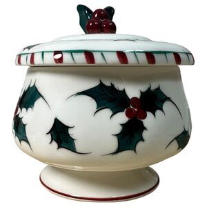 Lefton Vintage Holly Candy Cane Jar #38 Candy Dish Sugar 5.5 inches tall