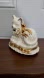 The Vintage Lefton Gold-Trimmed Porcelain Cat Rotating Music Figurine is a traditional-style figurine that plays the tune 'Memories' is in excellent condition, no chips or cracks. Manufactured in 1997 by artist Geo-Zoltan, this cat-shaped figurine features a glossy ivory finish with gilded details. Made of porcelain, plastic, and metal, this unique collectible is part of the Cats collection and is perfect for any room in the house. With a rotating feature and a vintage charm, this figurine is a delightful addition for cat lovers and music enthusiasts alike. Measures approx 5.25" x 5" x 3.5"