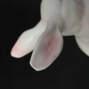The left ear has an imperfection, a smoothed over chip from years ago.