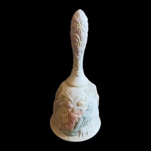 Lefton china the nativity bell "o come all ye faithfull"is the name of this collectible bell it is nativity scene done in pastels colors 3d style 7" high in great condition without box from smoke and pet free home.0465